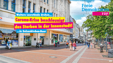 Eine städtebauliche Aufbruchstimmung fordern Susanne Cichos, Oberbürgermeister-Kandidatin der FDP, und Anne Schürmann, für die FDP Mitglied in der Bezirksvertretung Nord. „Das drohende Aus von Saturn und die Schließung der Pieper-Filiale an der Blindestraße haben mich schockiert“, sagt Anne Schürmann. „Die Corona-Krise beschleunigt das Sterben in der Innenstadt“, ist Susanne Cichos überzeugt und möchte möglichst zeitnah einen runden Tisch initiieren, an dem Vertreter aus Unternehmen, Vermieter, Wirtschaftsförderung und Stadtmarketing, kreative Ideen entwickeln.
